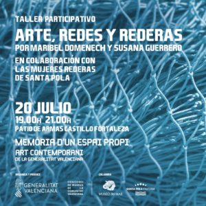 El próximo jueves, 20 de julio, el Patio de Armas del Castillo Fortaleza de Santa Pola (Baix Vinalopó, Alacant) acogerá el taller participativo ‘Arte, redes y rederas’, que contará con las artistas Maribel Domènech y Susana Guerrero y la colaboración de las mujeres rederas de Santa Pola.